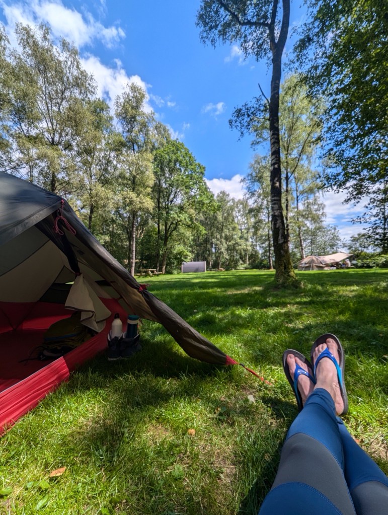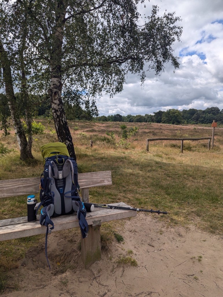 In mijn rugzak heb ik alles wat ik nodig heb: van tent tot matje en slaapzak, een brandertje, eten, wat kleding en als luxeproducten een lichtgewicht stoeltje en mijn e-reader. De eenvoud van het weinige wat je nodig hebt en de cadans van het wandelen geeft een heerlijk gevoel van rust in mijn hoofd.